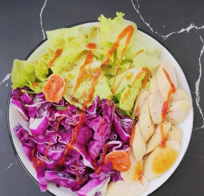 鸡肉肠再简单快速的加上一点蔬菜,就成了一份外面卖20、30块的沙拉!