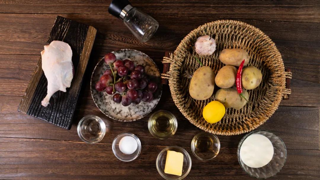 黑胡椒 些许 / 盐 些许 / 葡萄 3颗