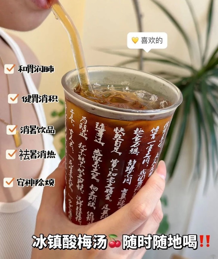 ②中医认为,酸梅汤有清热、生津止渴等等好处,适合夏季饮用,尤其适合阴虚、易口渴的人群。