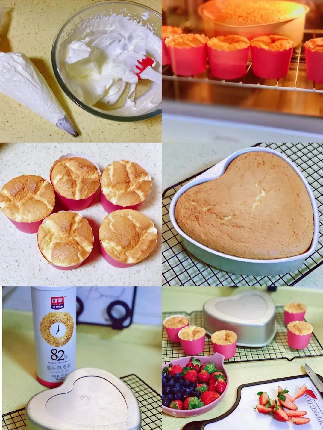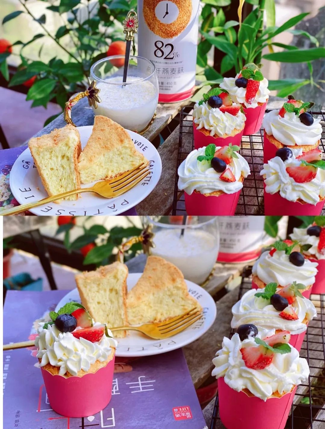 ⑥ 倒入模具与蛋糕杯中,震动一下气泡,放到烤箱,设置180度,等待40分钟即可。
