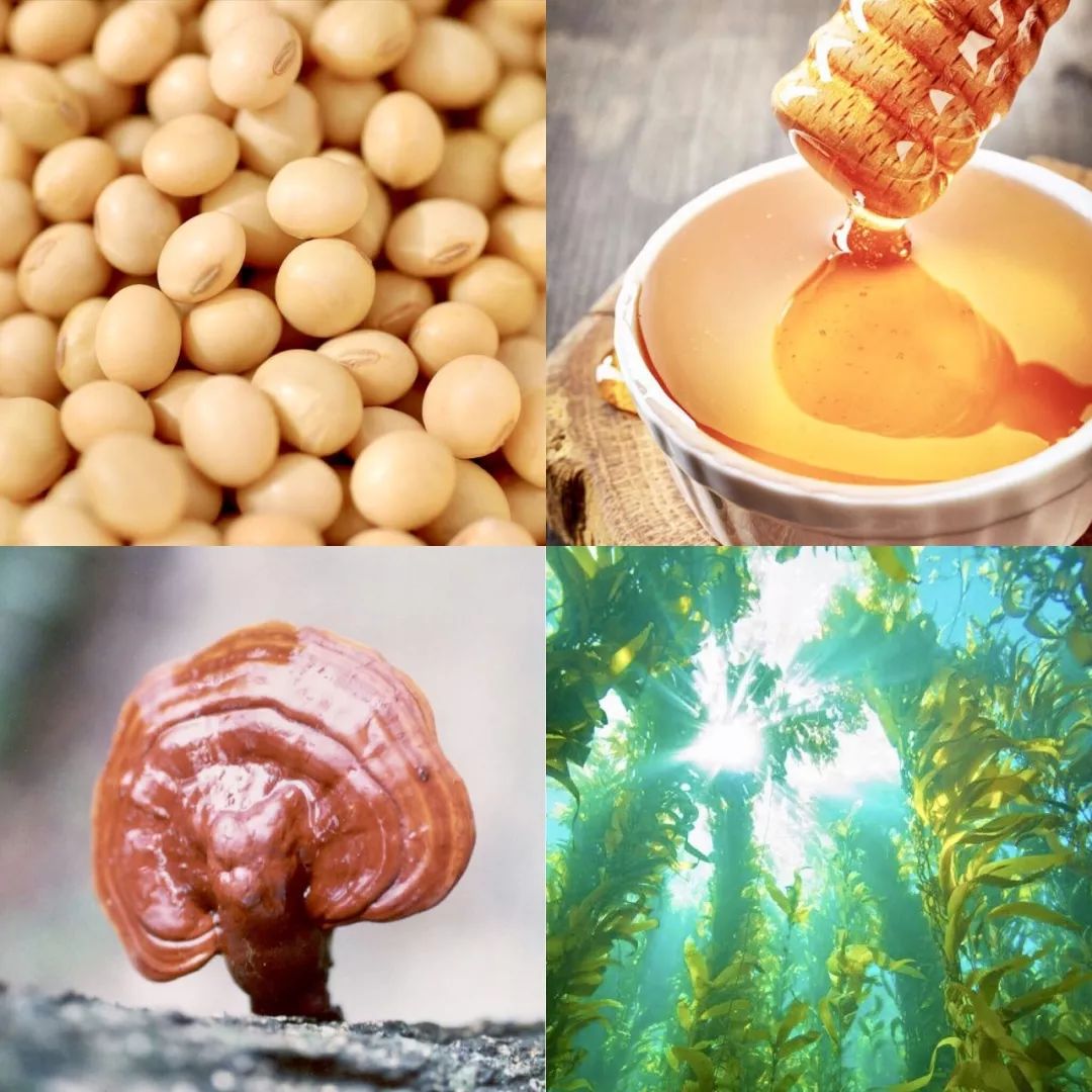 蜂胶、灵芝:增强肌肤屏障,净化皮肤毛孔,深层补水锁水。