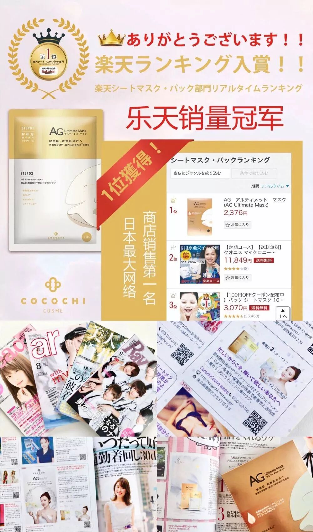 不仅获得日本乐天商场面膜类的销售冠军,