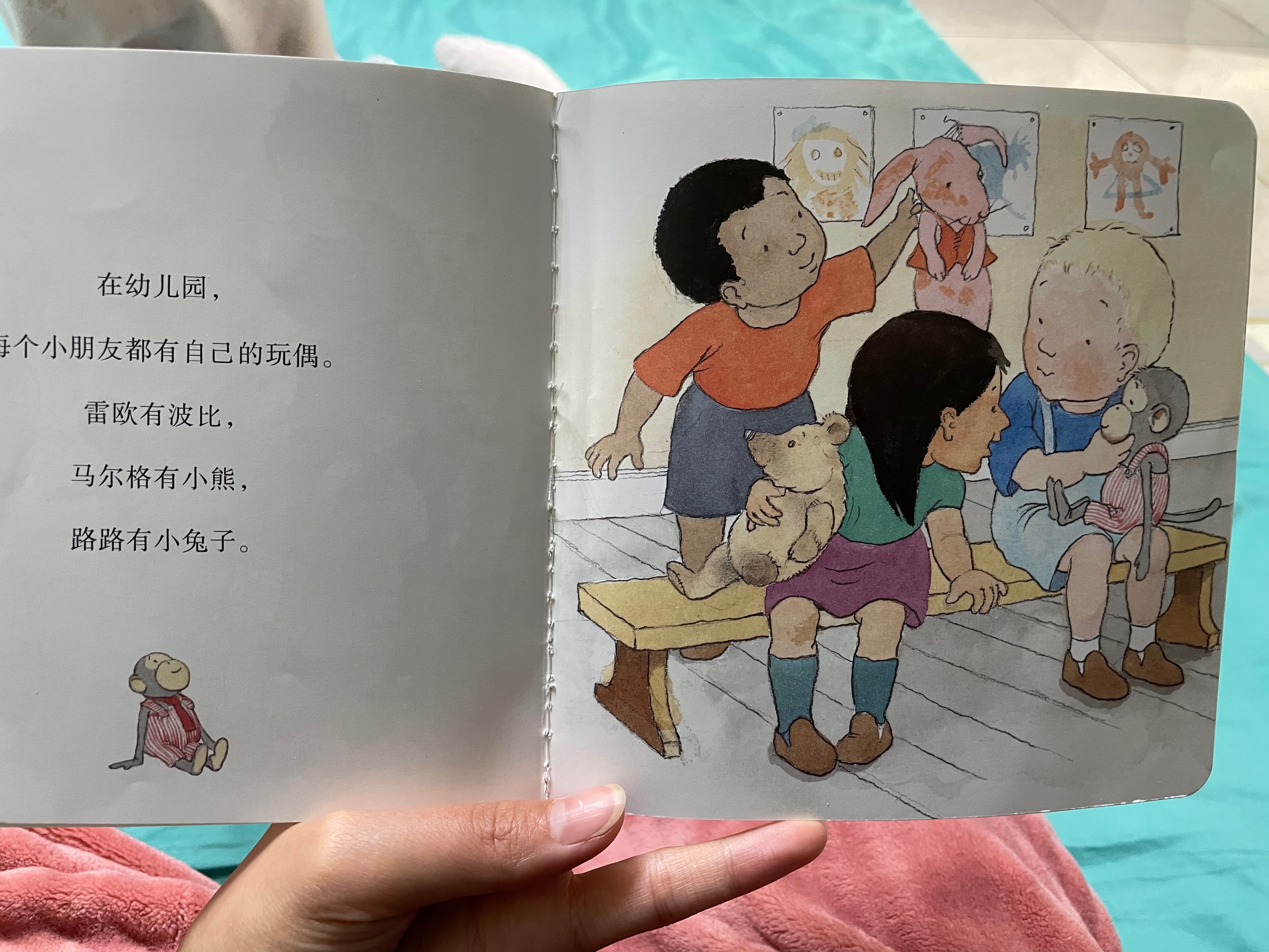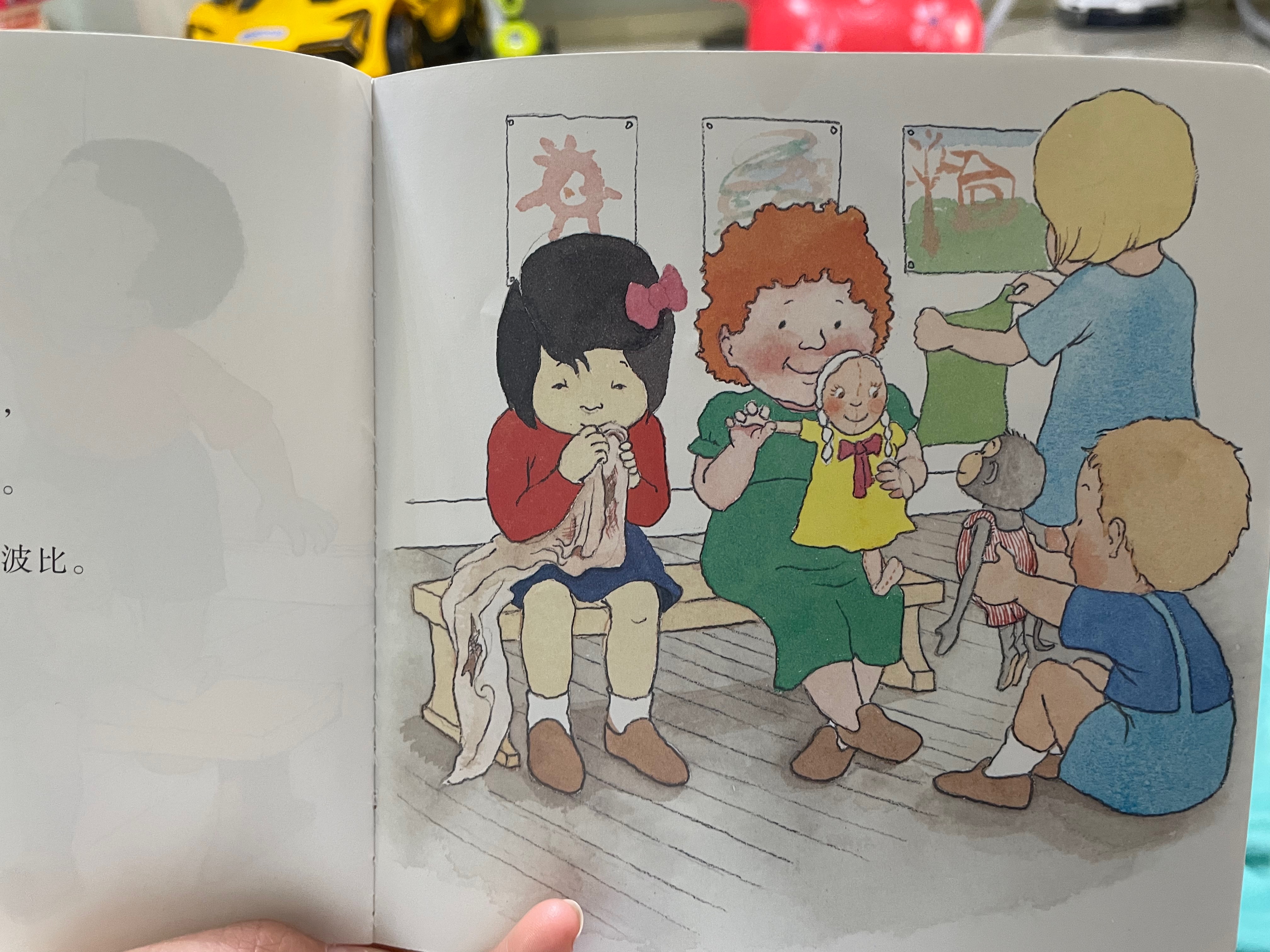 看到这,汤圆说小兔子受伤了,创可贴在哪里🧐 我给她拿了一个小贴纸,她帮小兔子贴上了