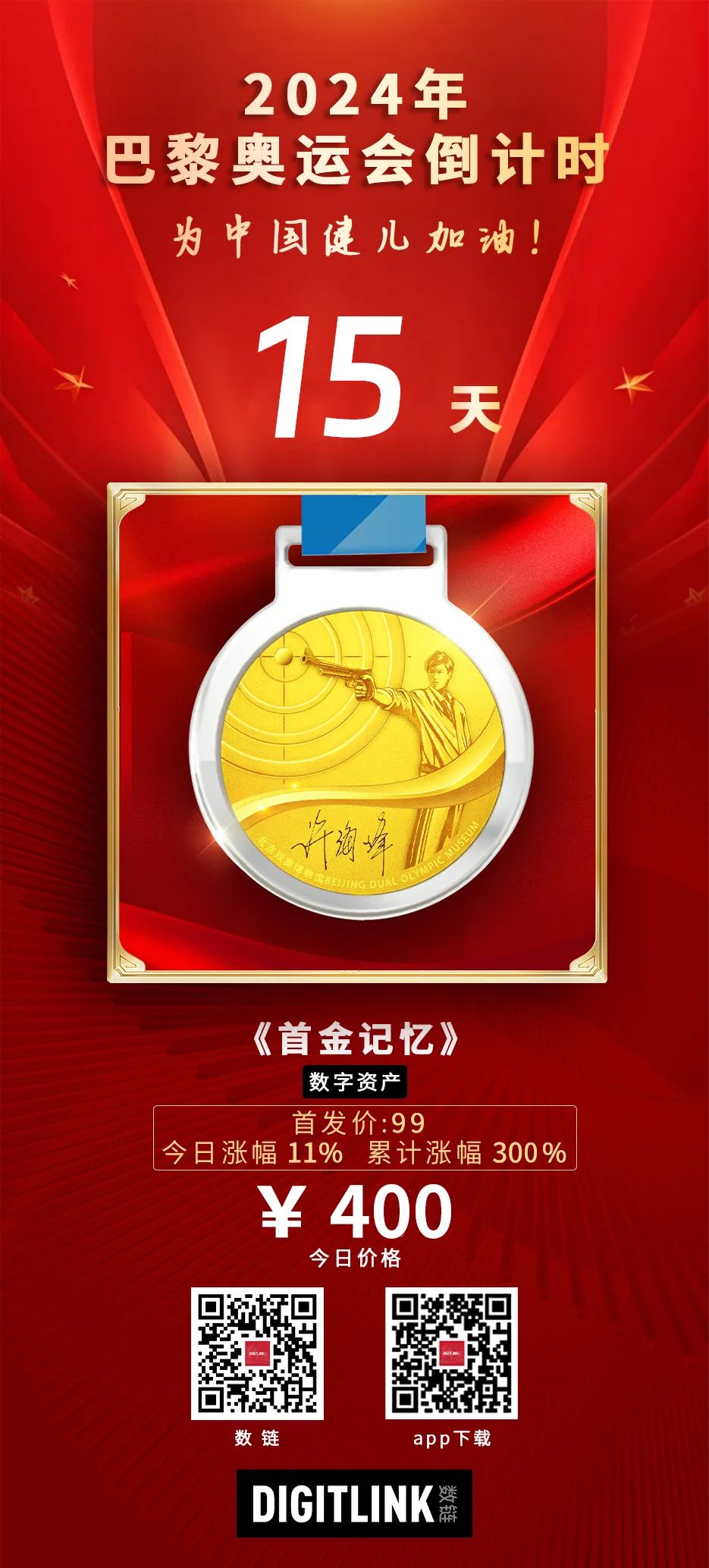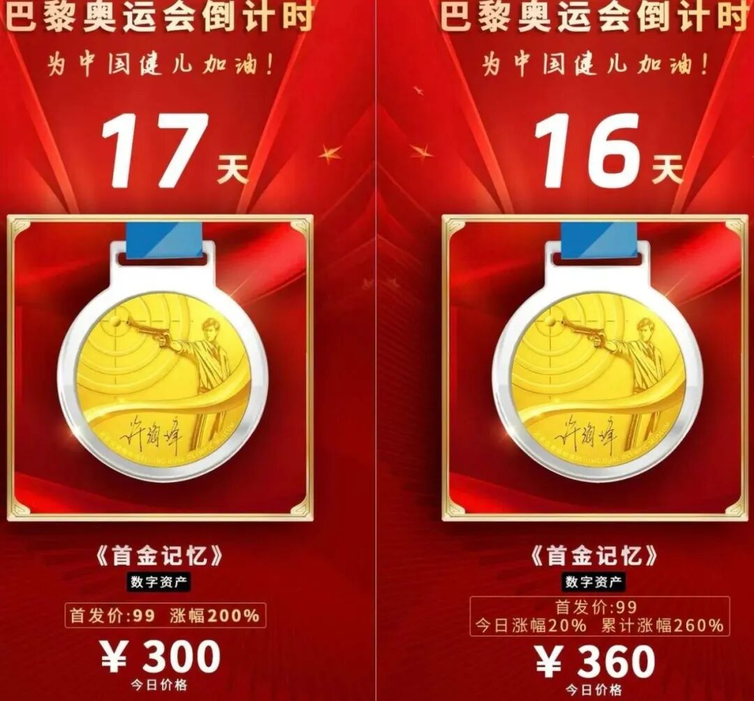 浙江文化产权交易所与浙江艾叶文化艺术品股份有限公司共建的浙江文交所体育文化数字资产交易平台——数链也隆重推出了该产品的数字版,首金纪念金牌首发价99元,二级价格每天都在稳定上涨。