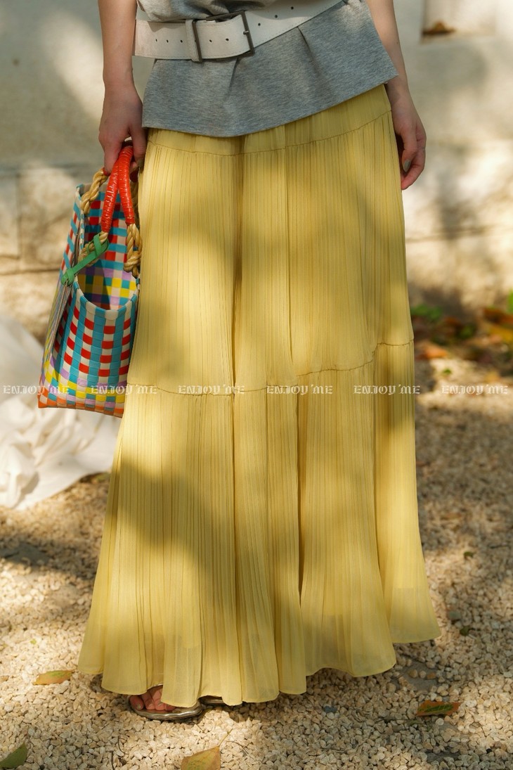 鹅黄蛋糕纱裙层叠网纱漫至脚踝