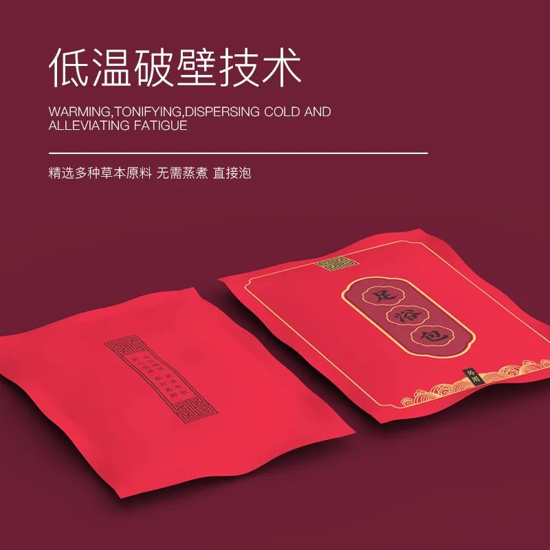 像这种泡脚包,直接升级,采用低温破壁技术将草本研磨成小分子泡脚包,粉质细腻,更易溶于水,不需要煎煮,只需要用热水泡几分钟就可以。