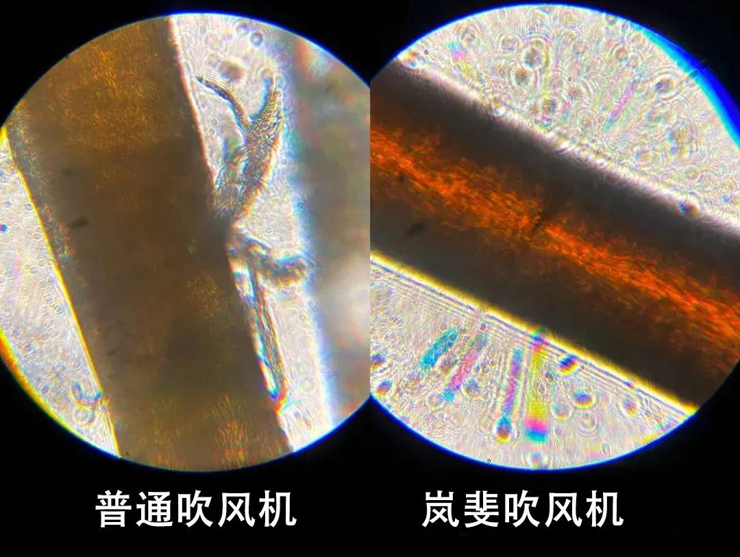 给大家直观看下普通吹风机和岚斐风机吹完头发后不同效果: