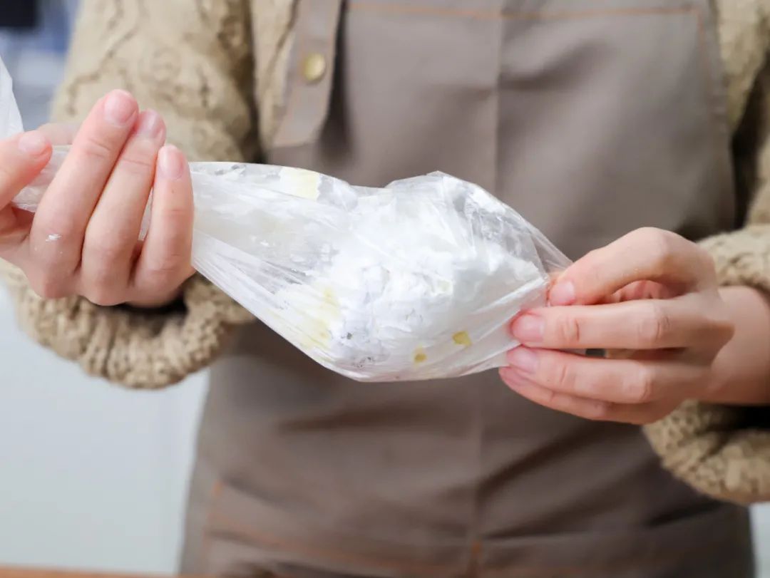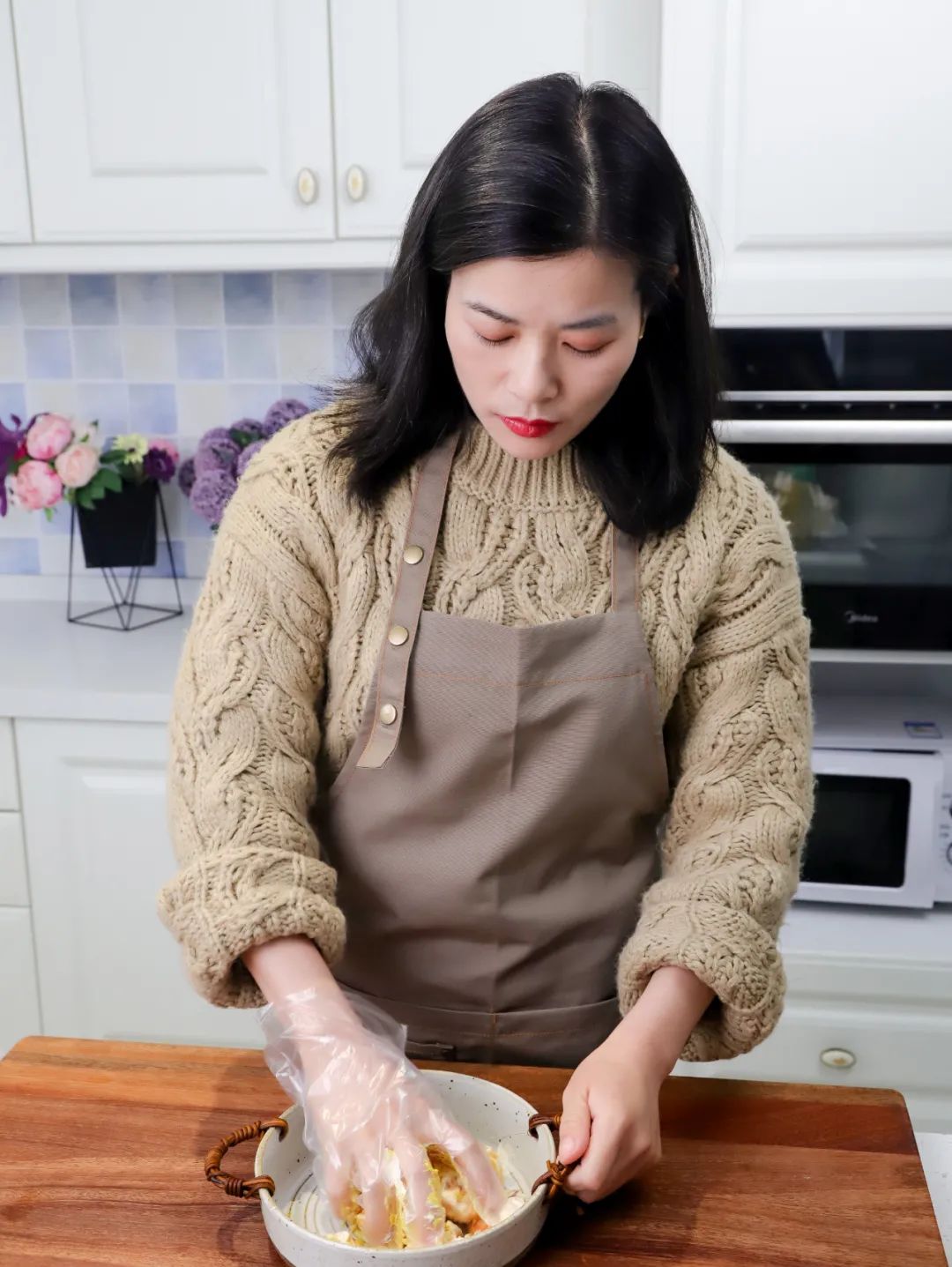 十九妈这里教大家一个均匀裹上淀粉的方法: