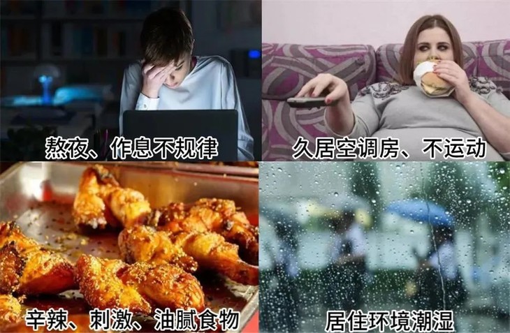 都市人久坐不动、熬夜、吹空调,血液循环能力减弱,体内湿气严重,多余油脂无法排出,转移到皮肤,就会造成皮肤暗黄、长斑。