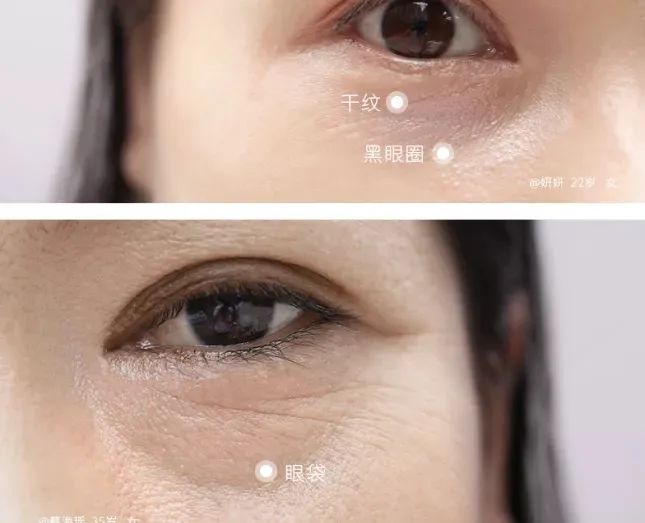 一副大眼袋让你皮肤松弛,显老10岁;双目无神,无精打采;眼袋还会加速细纹、黑眼圈形成。