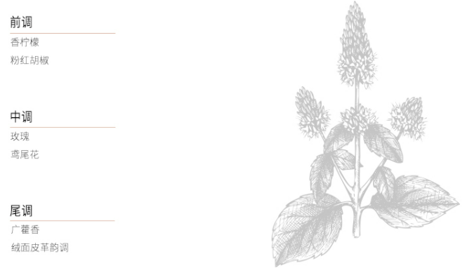 月光下的广藿香就像―封邀请函,它邀请我们重新体验广藿香。调香师想象出了一种新颖的木质调,高贵的皮革与柠檬果香令其更加华丽。
