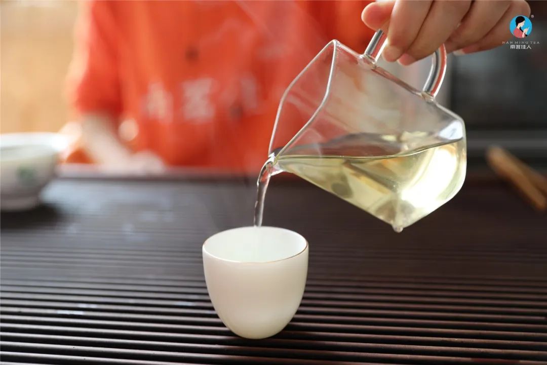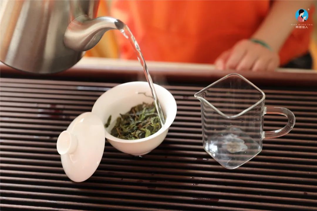 热水与茶相遇,干茶逐渐被浸润,释放出怡人的香气和清透的茶汤;