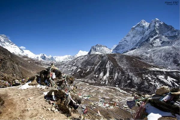 三角形的巨大山体就是海拔7161米的Pumori 全景图