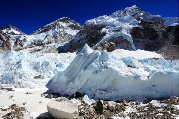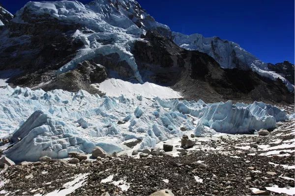 巨大的冰川从珠峰山壁上缓缓流下,一二十米高的冰塔林清晰可见,行走在这里,感觉自己就像是走在世界的尽头一般,一种莫名的压迫感笼罩着我,同时令人震撼的景色又使我热血沸腾。