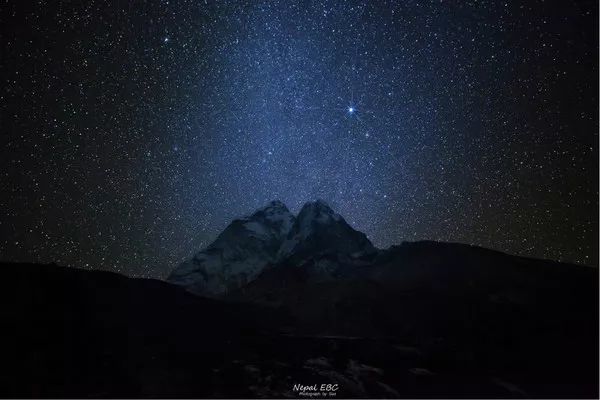 那夜百无聊懒,屋内火烧的太旺,有些燥热,出门深吸口气,仰望星空。“我操!” 银河从Ama Dablam正后方贯穿穹顶,这里的银河让我想起了在阿里北线在措勤陷车的那一夜,只是这次的星星更密更亮。