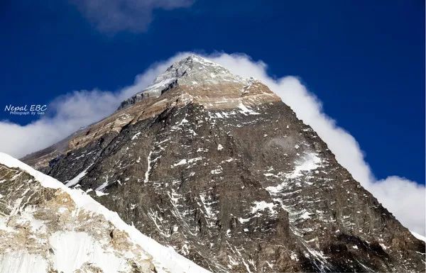 珠峰,用当地的名字萨加玛塔,显眼的花岗岩岩壁,黝黑的山体。