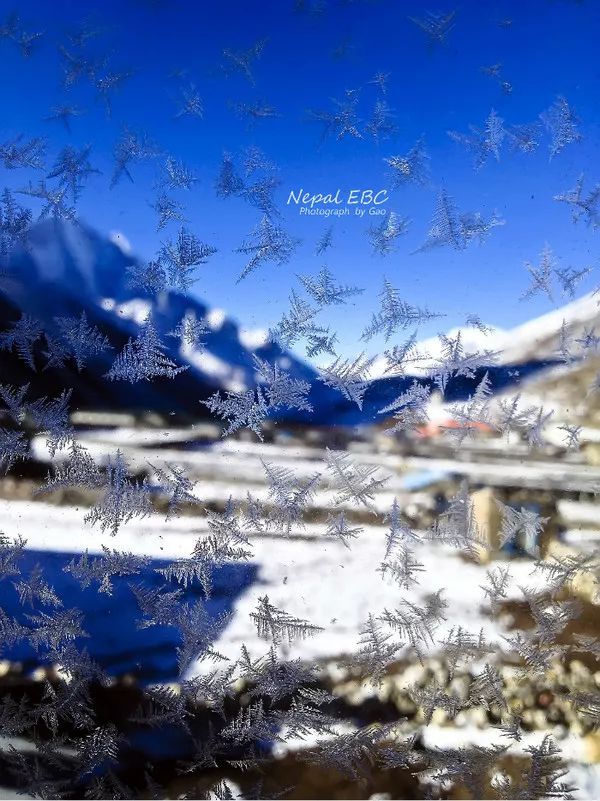 第二日醒来,由于屋外温度在零下二十度左右,屋内零下五度,窗户上结满了冰晶,像极了放大的雪花。整个村庄被几座七千米左右的雪山环抱其中,静谧中露着一股世外桃源的仙气〜