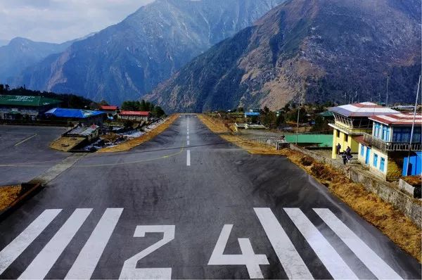 尼泊尔卢卡拉机场跑道坡为18.5度,呈起伏状,世界罕见,长度仅为475米。跑道尽头是千仞绝壁,一次失败只有机毁人亡,绝无复飞可能。