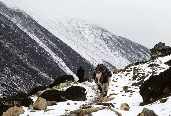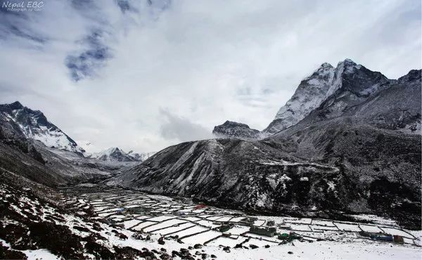 雪后的Dingboche,别有一番韵味,Ama Dablam就躲在云后,忽隐忽现。