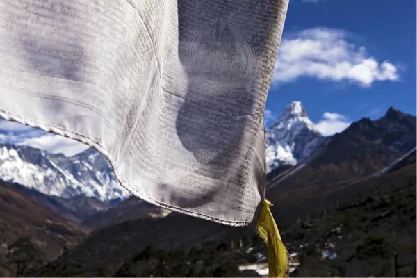 经幡舞动下的 Amz Dablam。