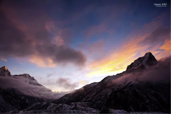 这是我认为最不可思议的一张图片,站在Kala Patthar的半山腰看珠峰日落,着实把没见过大场面的我看呆了。