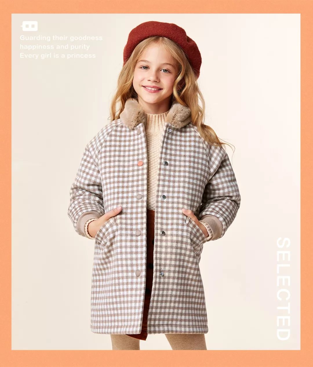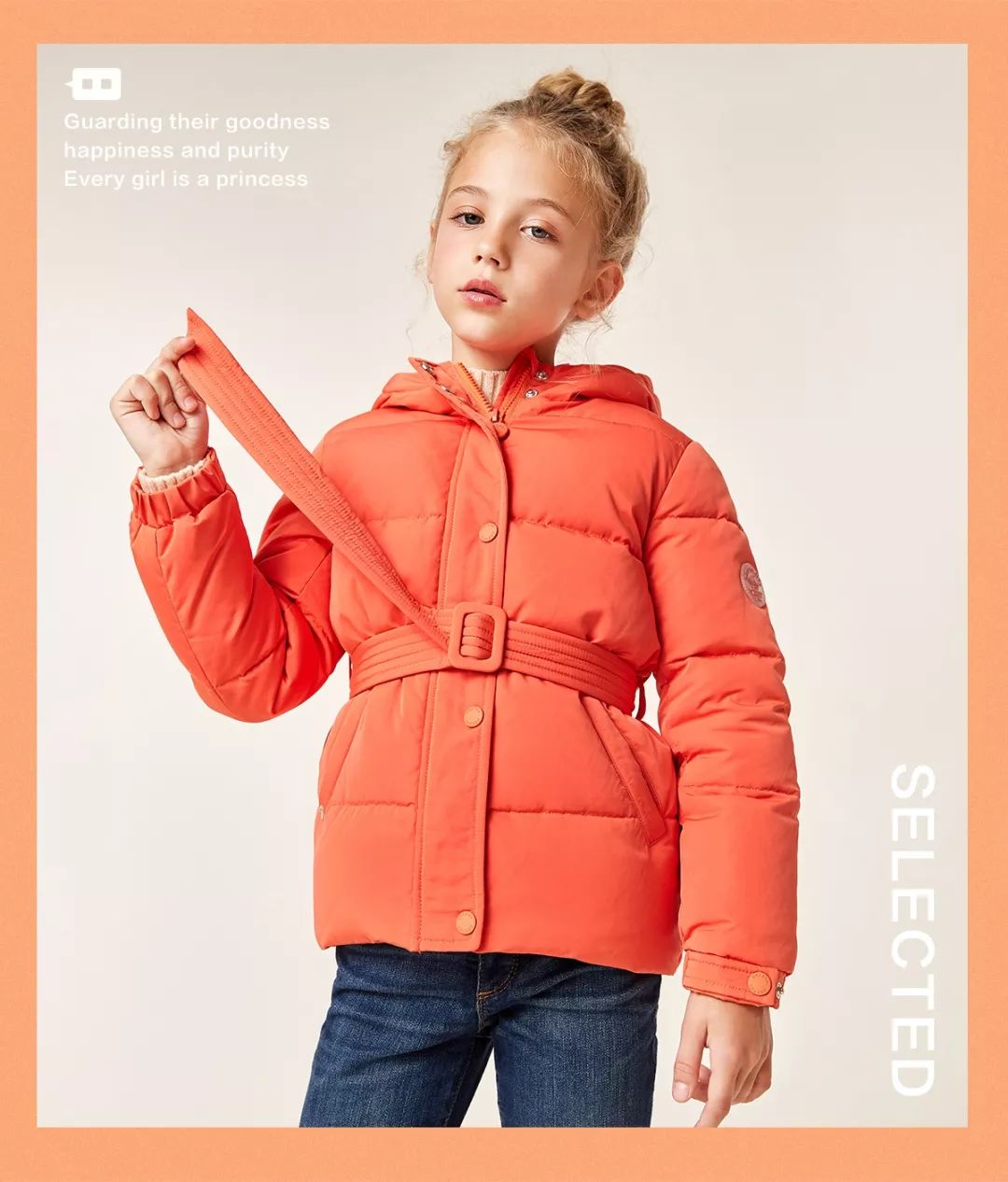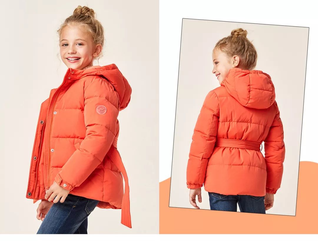 利落裁剪的橙色羽绒服