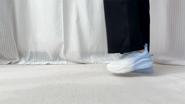 每一步踩下去,脚掌受到的压力瞬间被吸收,并转化为向上回弹的动力,就像有两个小弹簧在推着你往前走。