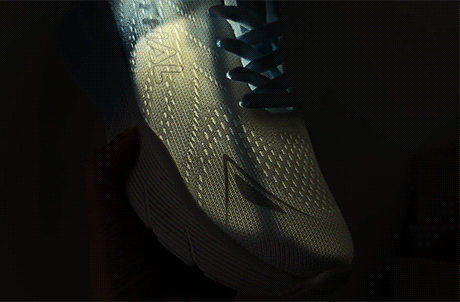 拿手机灯照一下,光线能从四面八方透出来, 整双鞋又轻又薄,透气性一目了然。