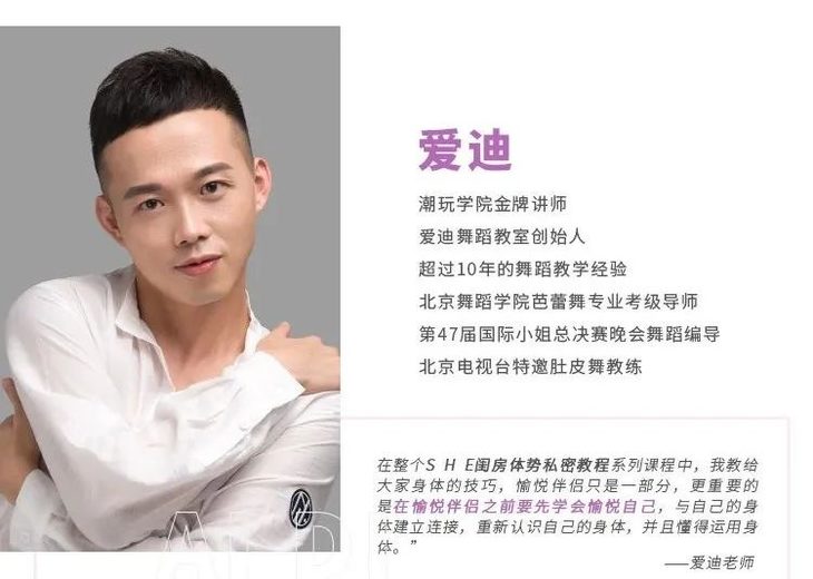 所以爱迪老师从各个舞种中,提炼出了能直接帮助到女性提升身体杏魅力的动作和技巧,形成了一整套的闺房体势私密教程,能帮助女性在亲密关系里,学会通过身体杏感力释放“爱”的信号。