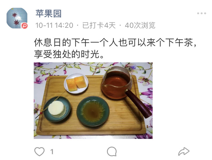 小罐君:看苹果园分享的图,都是一种享受,喜欢这样闲适的生活态度。