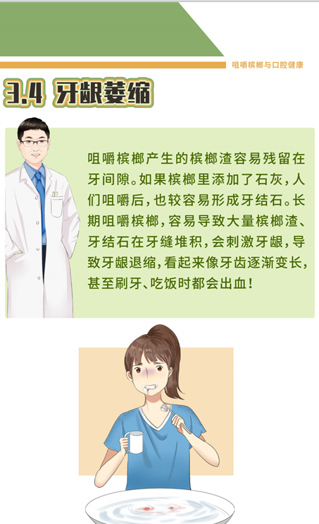 经常嚼槟榔,除了严重损害牙齿,导致牙齿变红变黑,甚至提前脱落外,对口腔黏膜、颞下颌关节等都有严重的健康隐患。早在2003年,世界卫生组织下属的国际癌症研究中心就已经将槟榔认定为一级致癌物。
