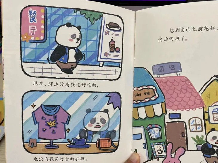 🧩快乐成长 ▶主要是沟通能力,自我认同,表演创造和风险应对四个方面。 ▼比如《点心师胖达》就是教给孩子正确的金钱观念: