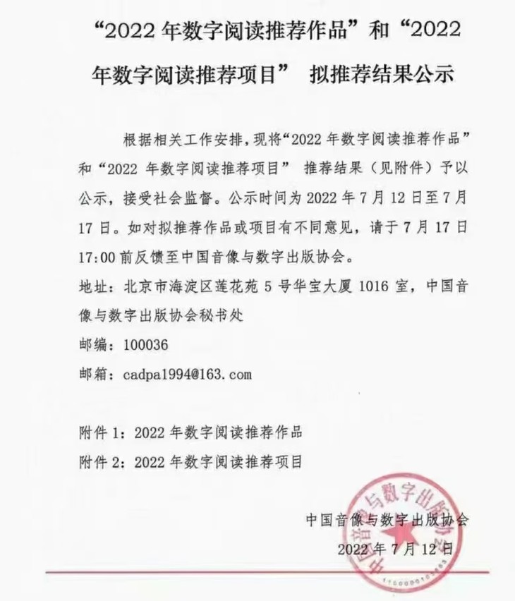 📢 重磅重磅 ❗❗ 《中文分级阅读精读营》被中国音像与数字出版协会认证2022数字阅读推荐项目,上线至今,中文分级阅读已为200000+个家庭带去终身阅读好习惯
