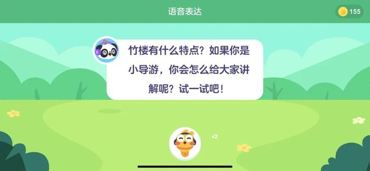 在启蒙和初学阶段,阅读的听是很重要,但是说也同样重要! 所以课程里的优美段落都会被摘选出来,让孩子跟着导读一起开口,这一点我觉得特别贴心! 除此之外,还会有锻炼孩子自主表达的表达题,要么是特点描述 ▼
