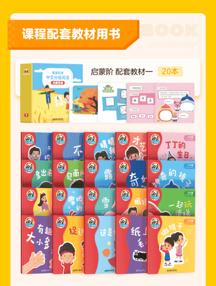 ————💛———— 最开始这套分级阅读的课程是只有电子书的,不过后来有道又专门研发了纸质书。 就是下面这套▼