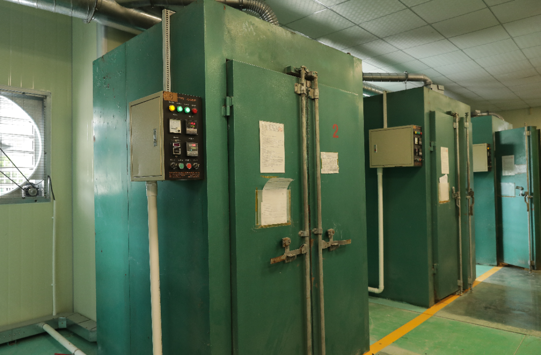 接着用工厂专业的脱脂烘干设备,将树木的含水量控制在8-13%内。