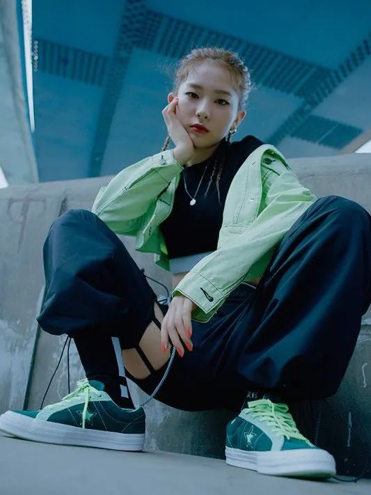 one star的风格百变,搭配上根本不劳你费心,converse的韩国代言人姜涩琪就搭配了连帽衫和束脚裤,打造时下流行的街头风。