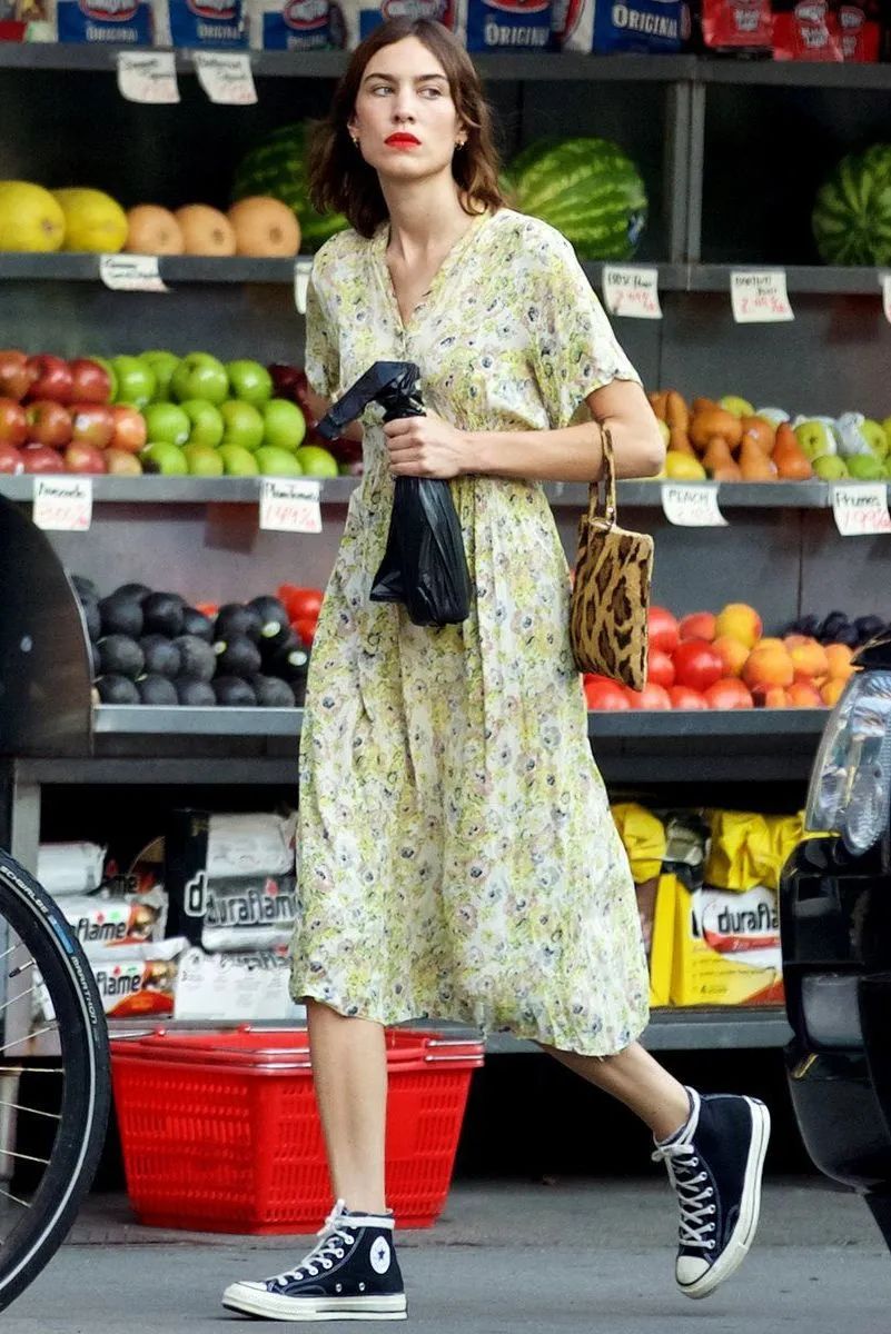 匡威行走广告牌Kaia Gerber有一双蓝色的one star,是与GOLF le FLEUR* 的联名系列,搭配同色系的印花裙特别有春天的气息。