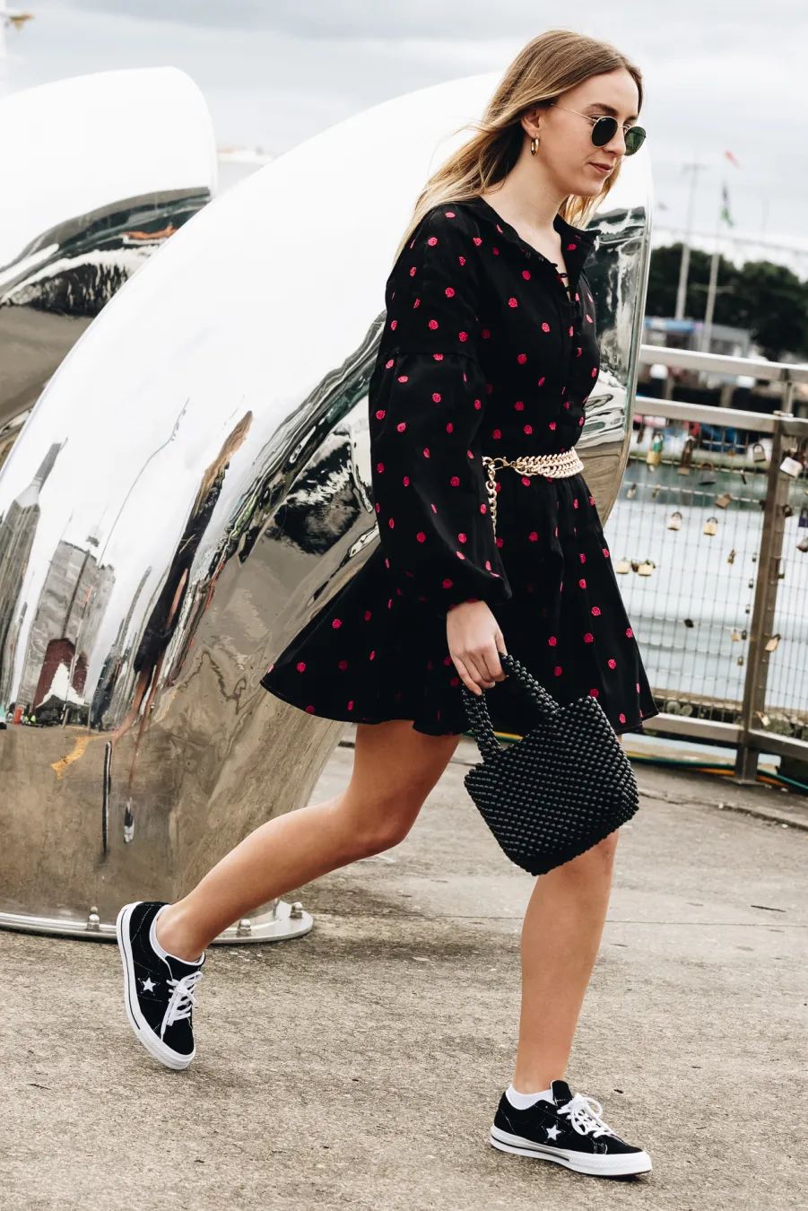 老牌It girl 钟小姐的匡威街拍一搜一大把,她几乎只穿黑色的Chuck 70,任何风格的衣服它都能搭配。