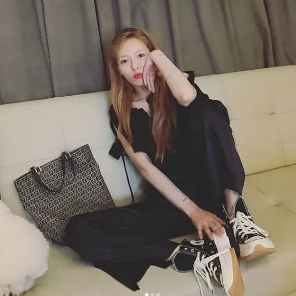 泫雅有段时间也超迷匡威,各种颜色的球鞋隔三差五地换着穿,不明真相的群众还以为她要代言匡威了。
