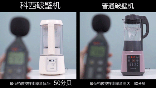 结果非常明显,普通的破壁机是60分贝,而科西只有50分贝,相当于咱们跟别人小声聊八卦的音量!