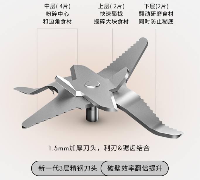 三层8叶的立体式刀片设计,对食材进行十八般酷刑: