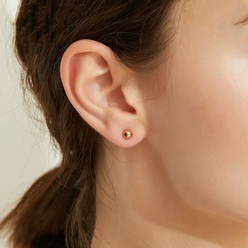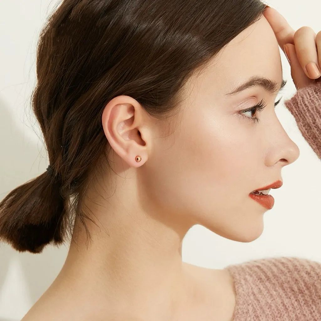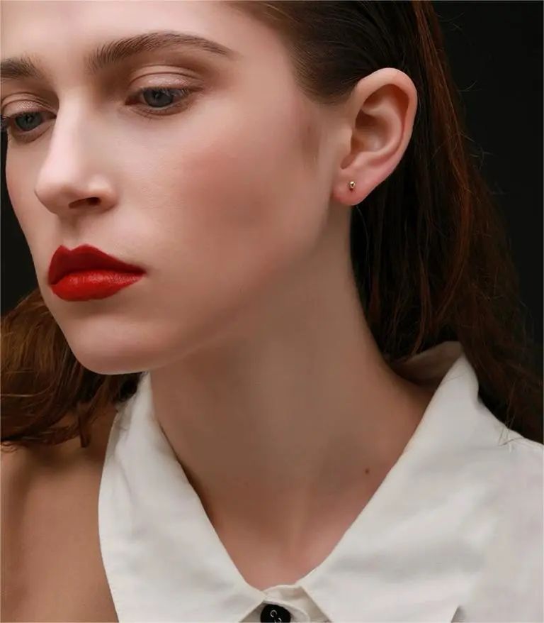 耳钉通体18k包金,简约的造型,加上镀金、抛光等工艺,若有似无地透露着些许光华,轻奢时尚。
