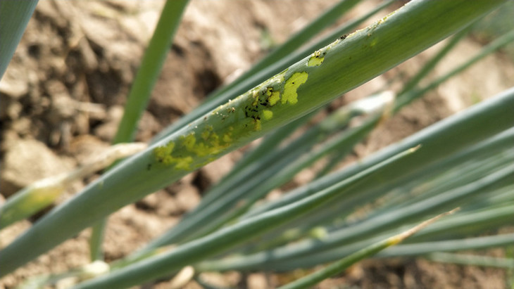 它是葱田阶段性发生的病害,发病期多见于6-9月份,病部位于叶片,会严重影响葱株生长,定植后有发病可能;
