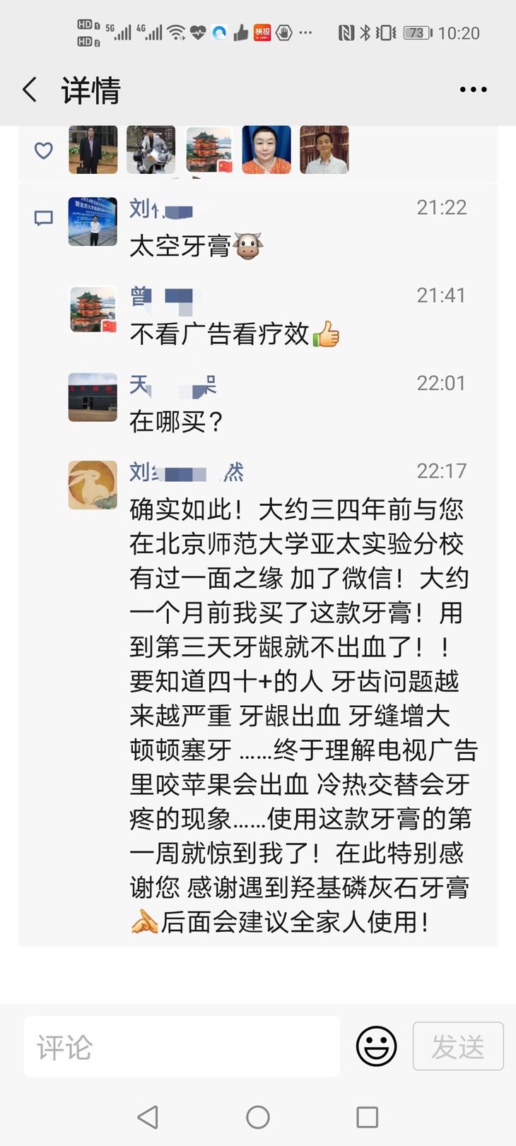 已有1000多名患者使用舒适雅nHAP牙膏,牙周炎得到有效的防治!