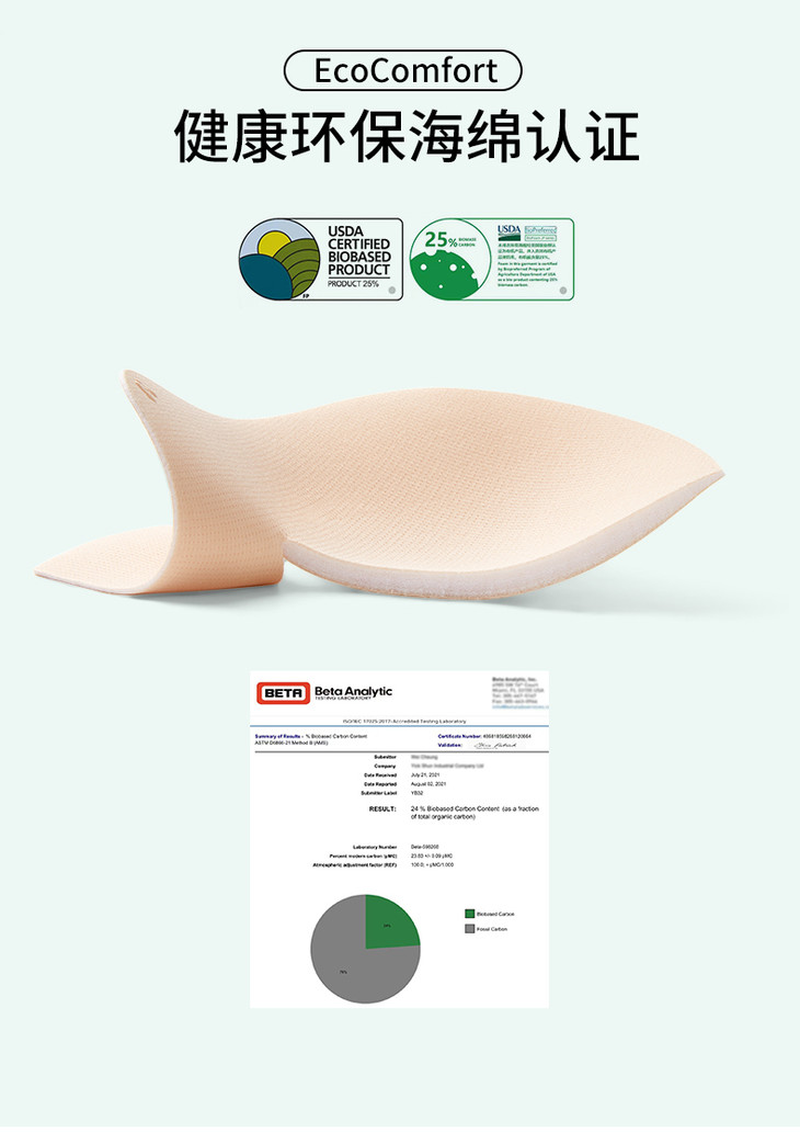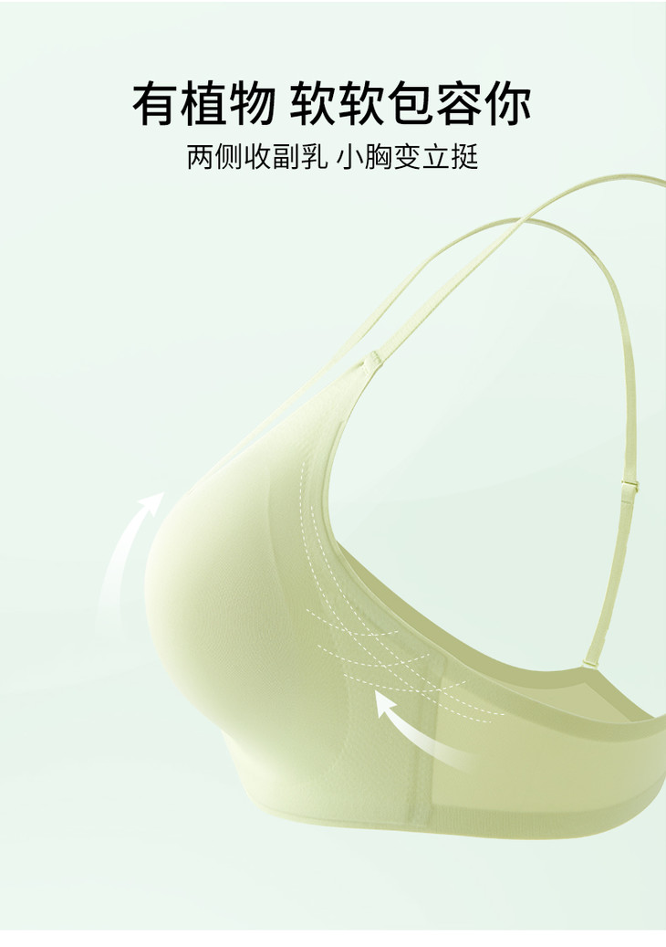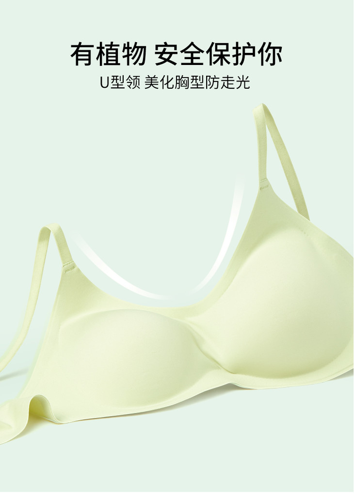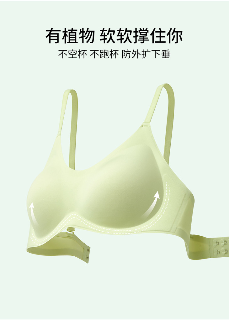 内衣是女人不可缺少的小伙伴,现代女性越来越意识到健康与乳房健康之间的关系,所以在选择内衣产品时,不仅关注塑形效果及美观程度,同时对于其是否健康也是相当在意。这款植物内衣采用EcoComfort环保海绵,提取植物精粹,固定杯设计,绿色环保,穿着健康自然、轻透无束缚感。