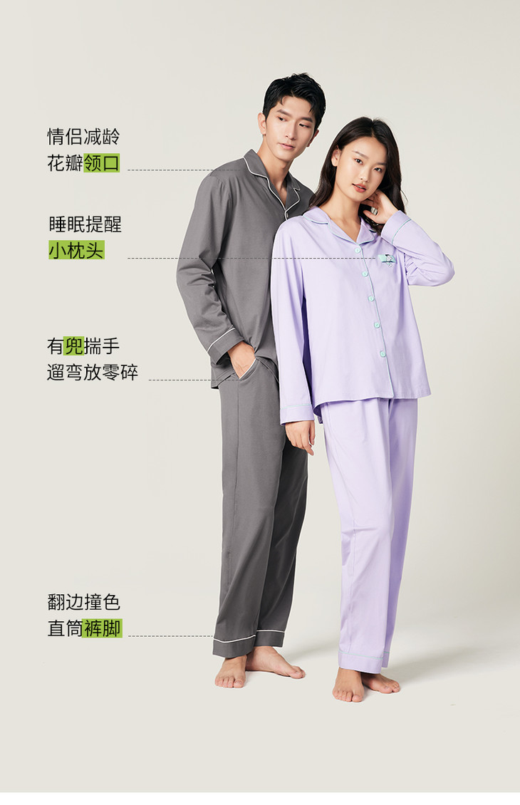 经典的上衣+裤子的套装。翻驳领开襟上衣,宽松舒服,穿脱方便。直筒长裤自在无拘束。好穿不挑人,对身材没有限制。情侣款设计,干干净净的纯色,很显质感。线条清晰,整体更简洁,更富有立体感,让穿着的人看起来更挺拔有精神。