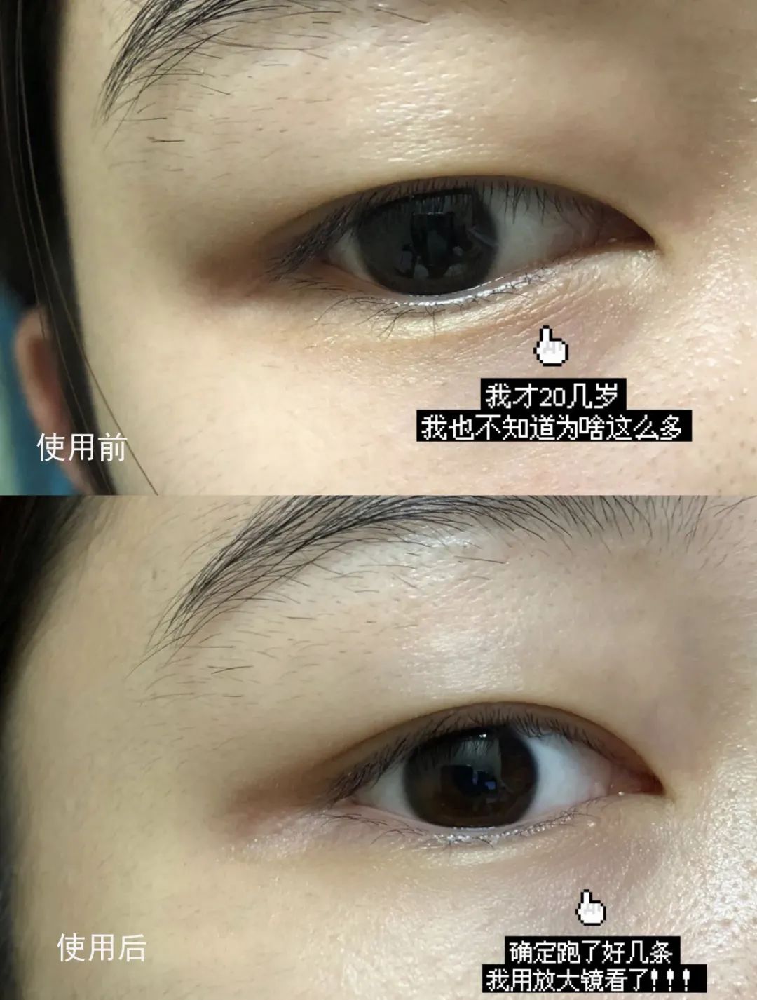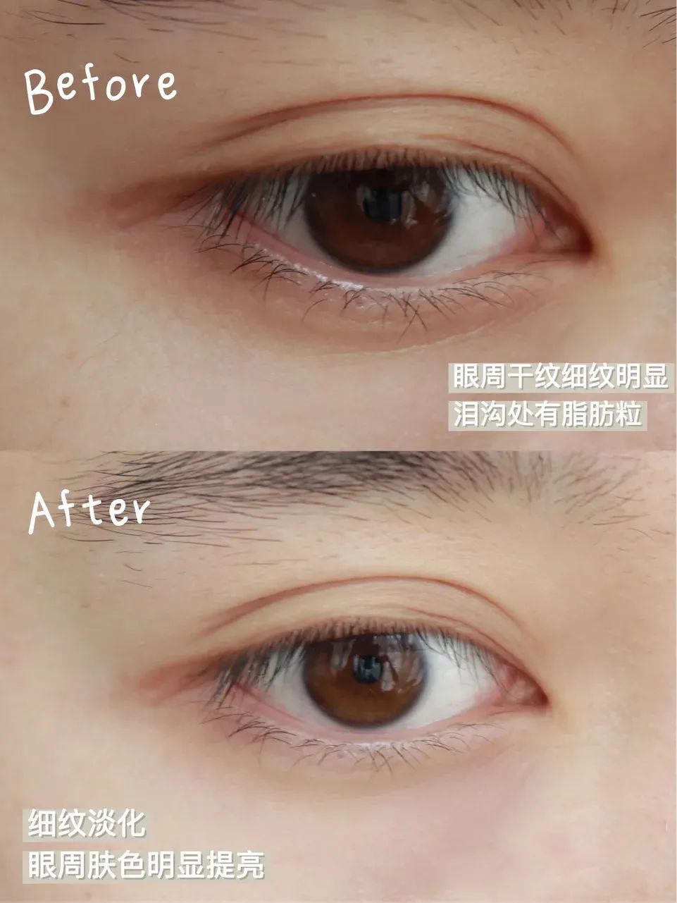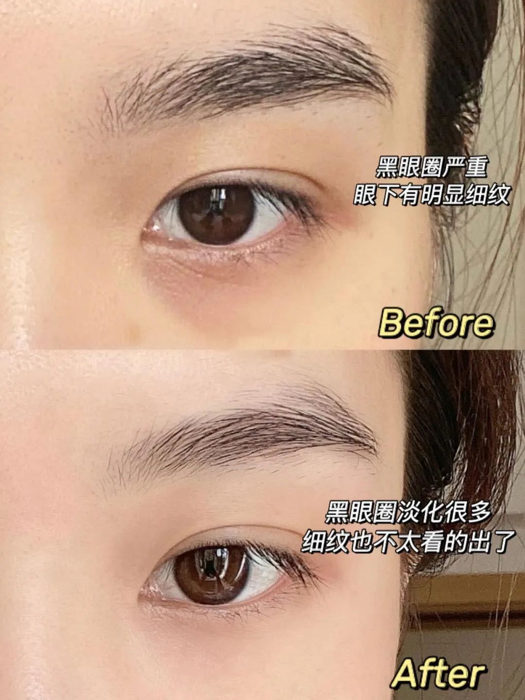 用了不到半个月,眼周泪沟纹就变淡了,松弛的皮肤也紧致了不少。