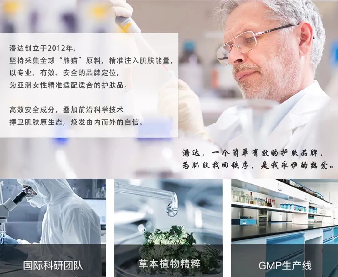 Panda品牌源自英国LCM专业实验室,倡导“科学护肤,实验为证”的护肤理念。