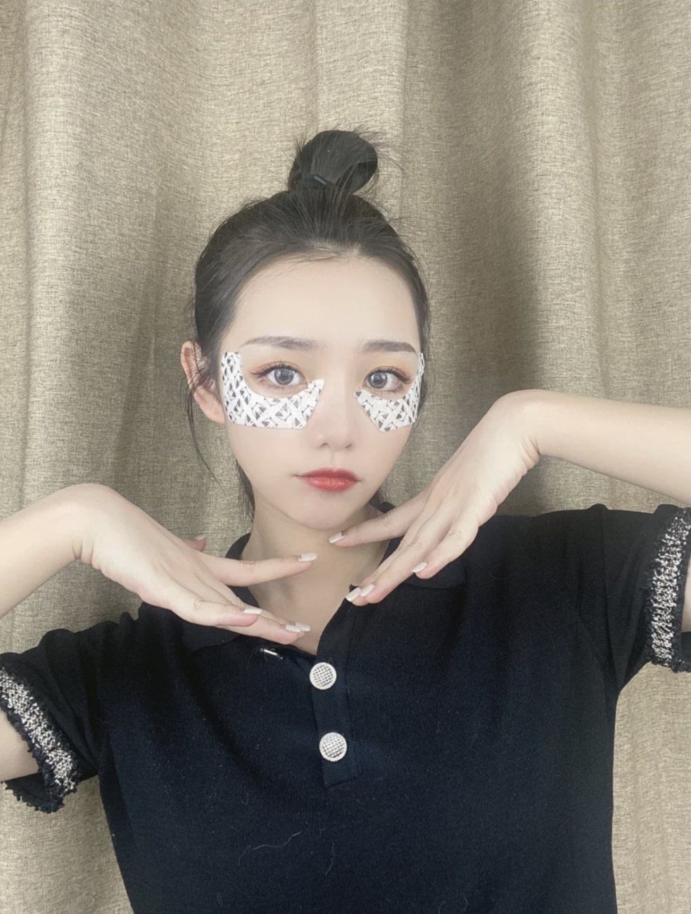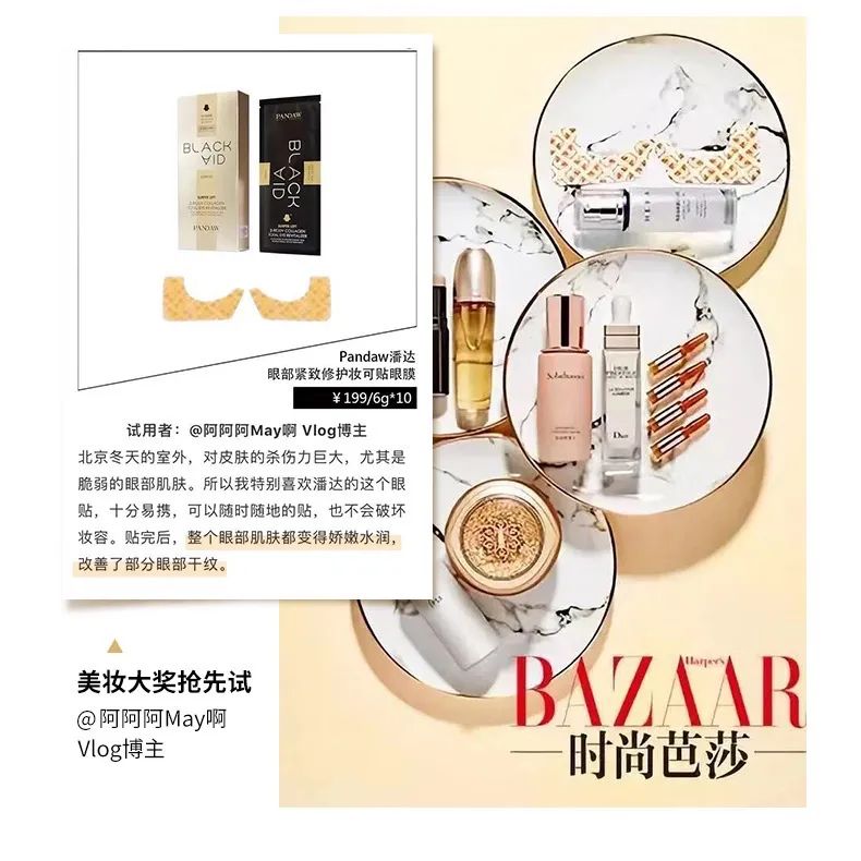 顶妆拍摄了一整天的她,下戏回酒店就在用这款眼膜保养眼周,有粉丝发弹幕问了才知道是潘达眼膜。